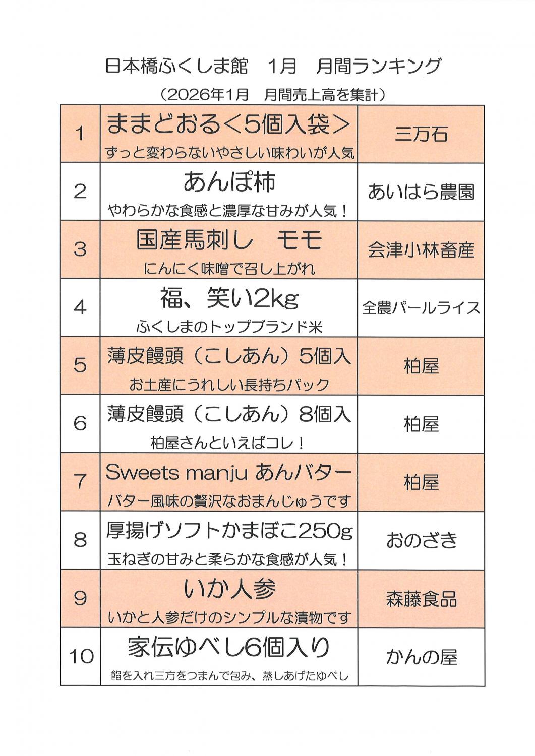 2026年1月 売上ランキング トップ10
